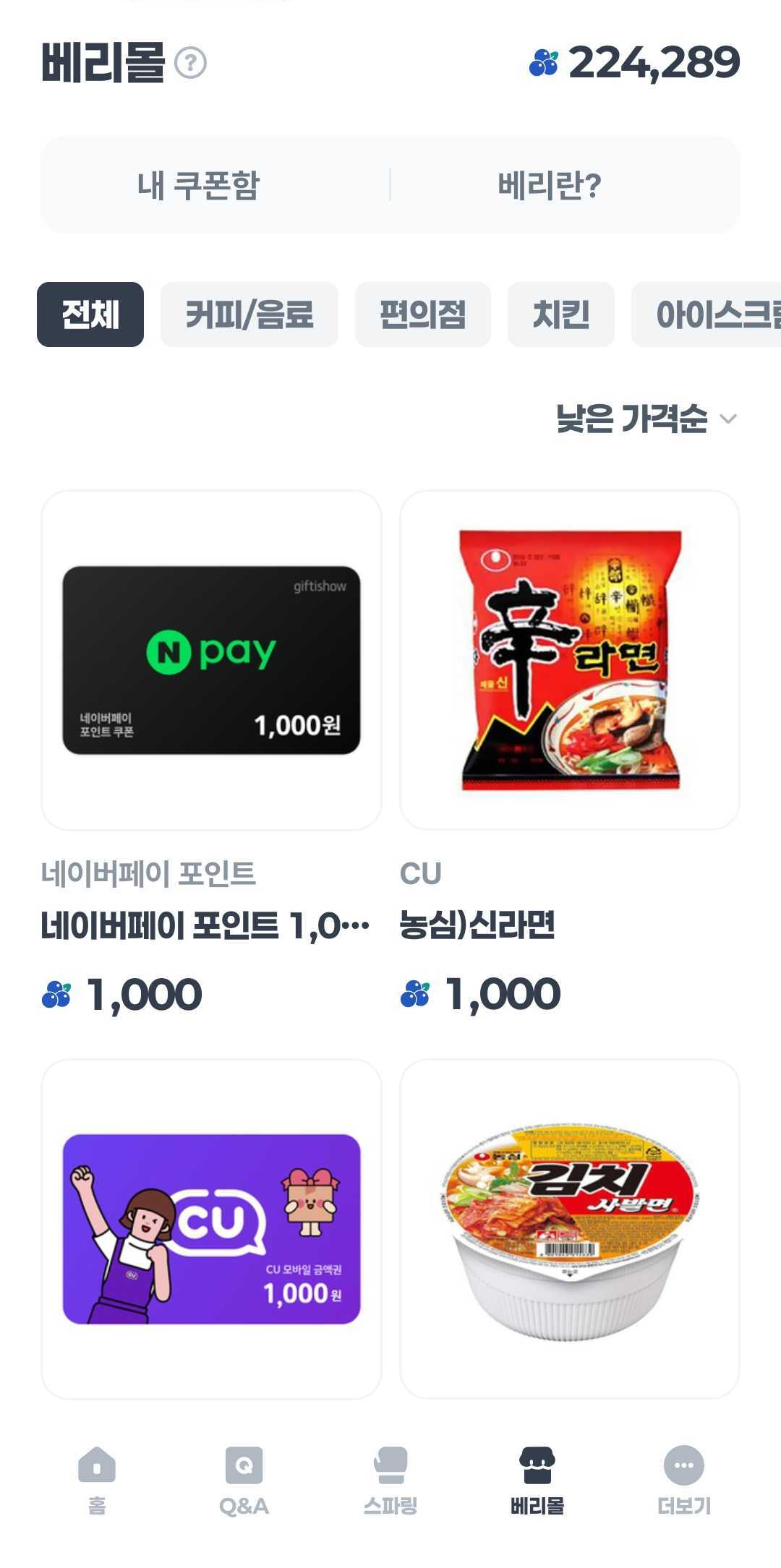 Q. 베리가 있는데 쿠폰으로 교환이 되지 않아요.