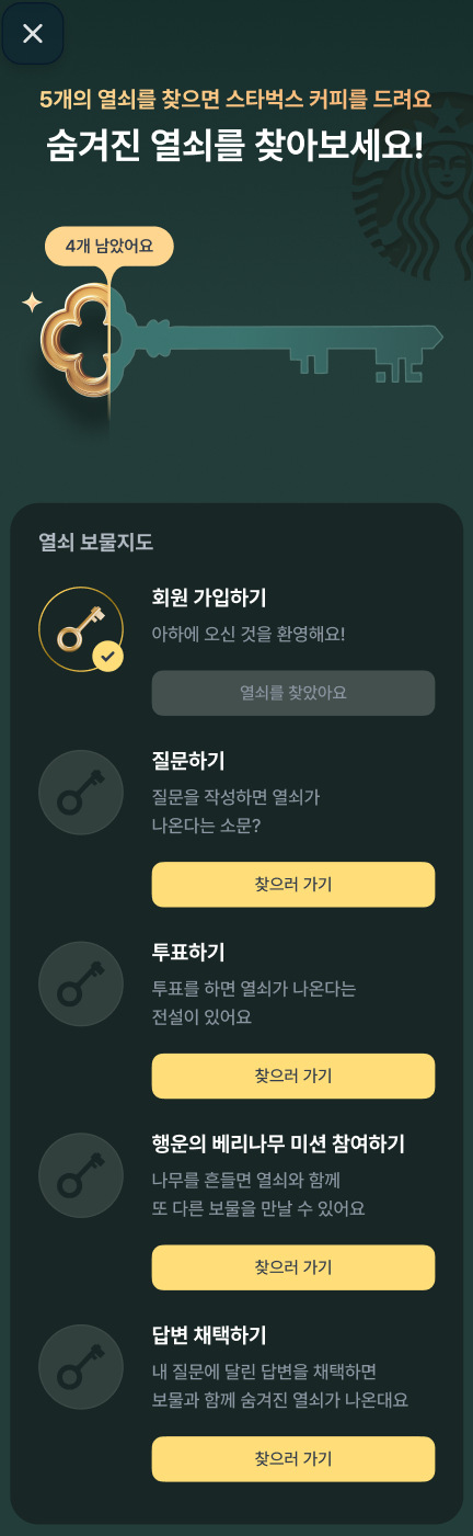Q. 황금열쇠 스타벅스 쿠폰이 사용되지 않아요.